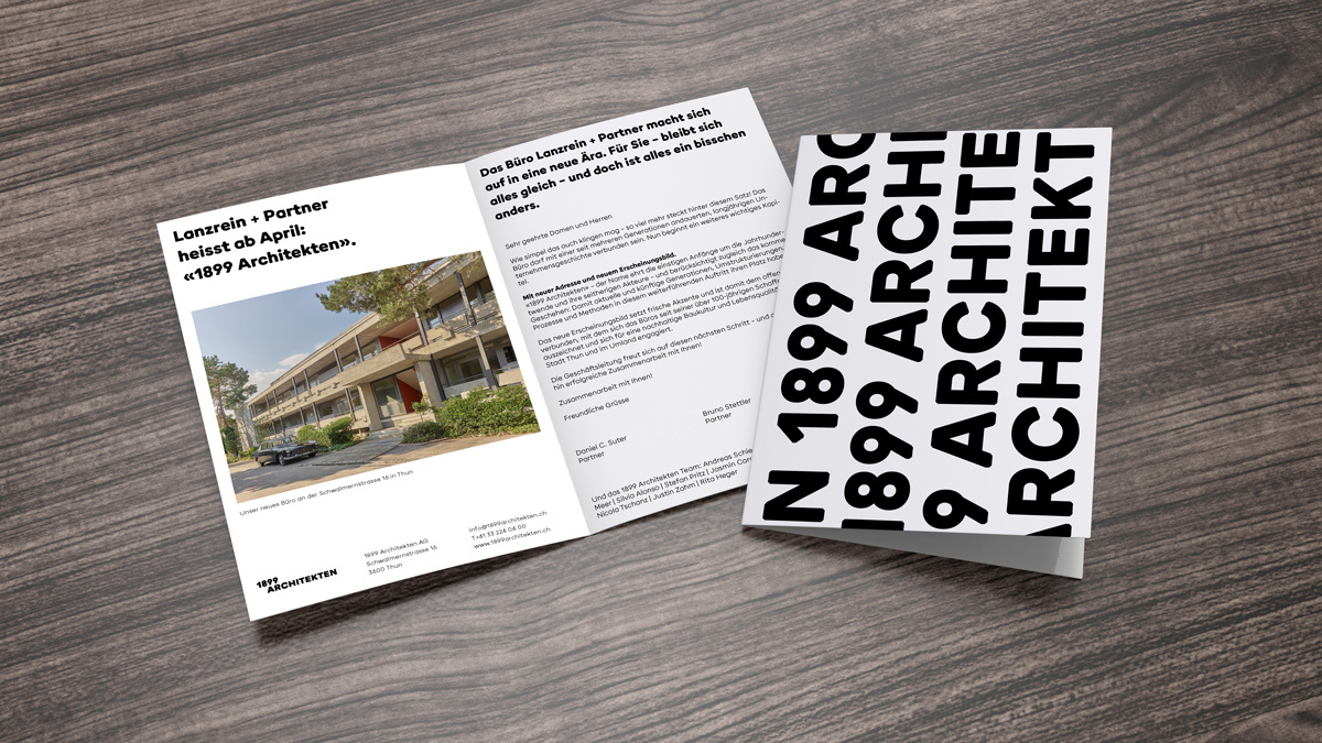 Das älteste Architekturbüro in Thun, Lanzrein+Partner und neu 1899 Architekten, ehrt mit neuem Namen – der Name bezieht sich auf das Gründungsjahr – bisherige Akteure und lässt Freiraum für künftige Generationen.