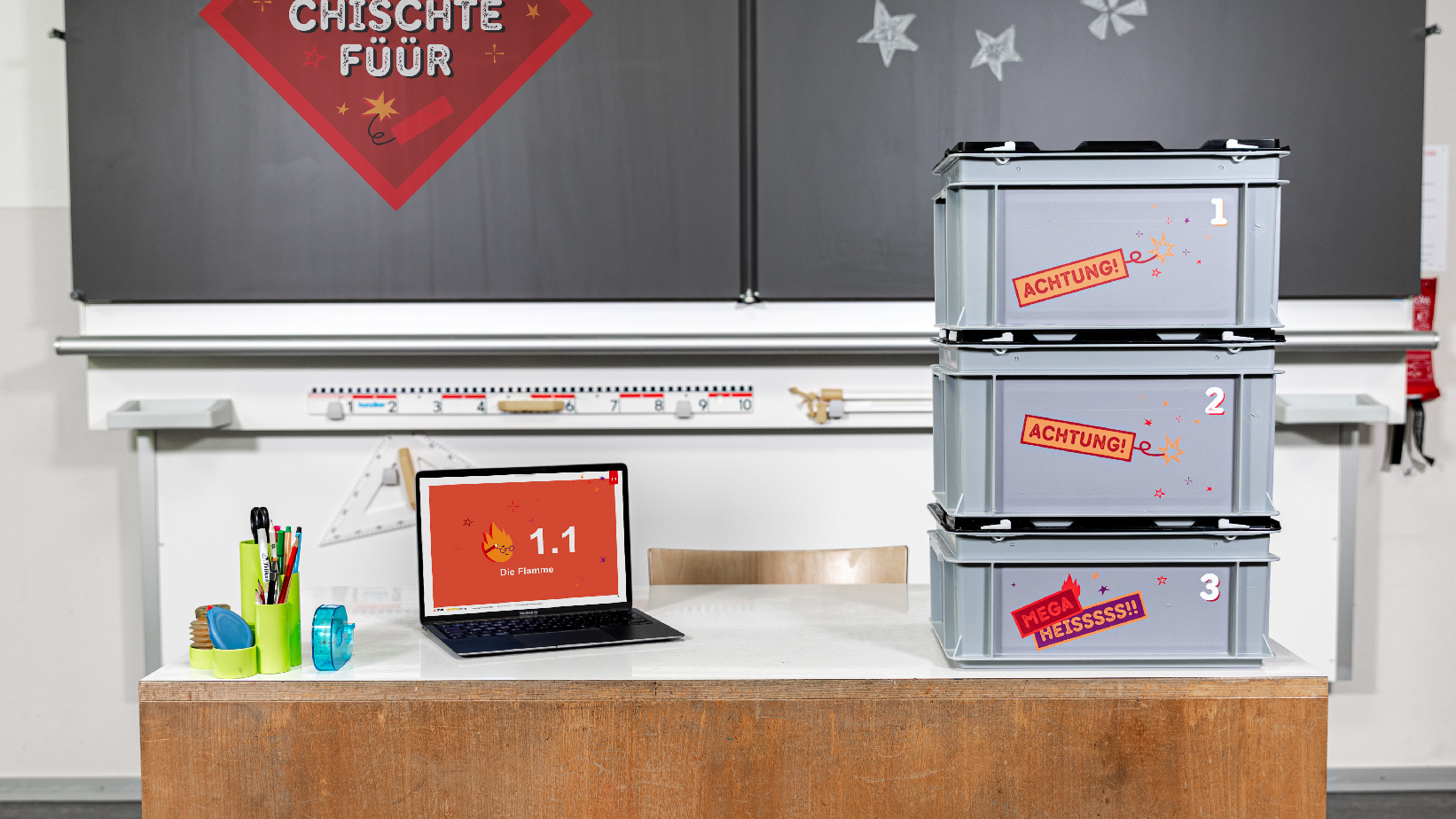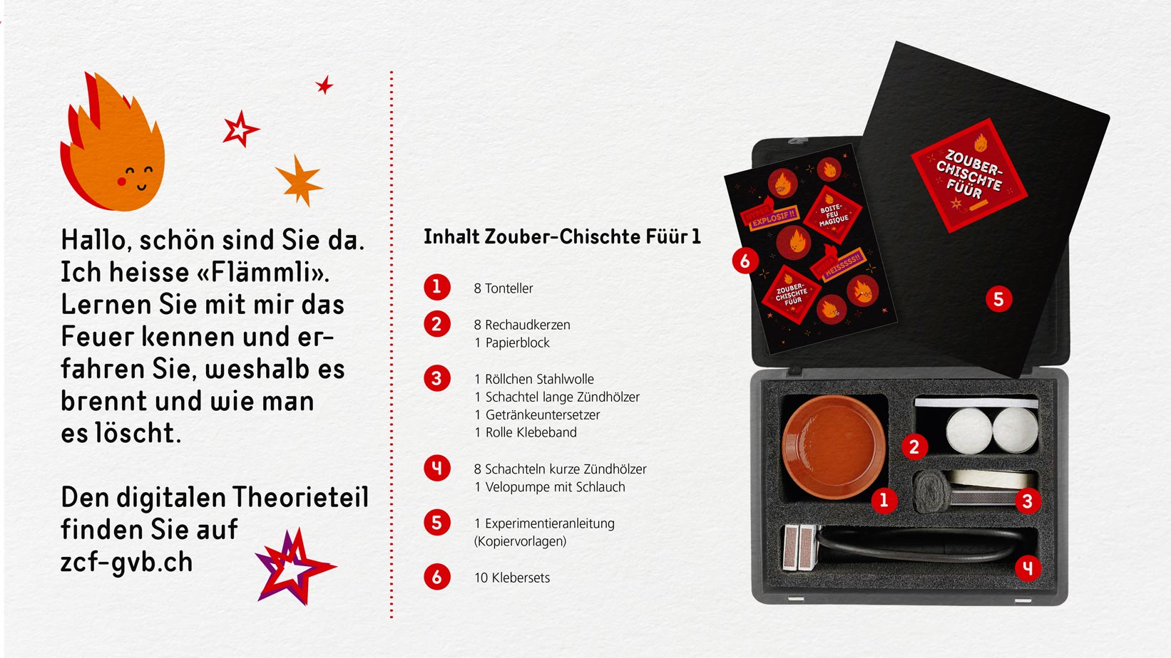 Wertvolles Wissen. Aber in einer alten Kiste. Für die Gebäudeversicherung Bern (GVB) revitalisierten wir die Zouber-Chischte Füür und brachten das altbekannte Lehrmittel in neuer Frische aufs Tapet von Berner Schulen. Viel Feuer inklusive.