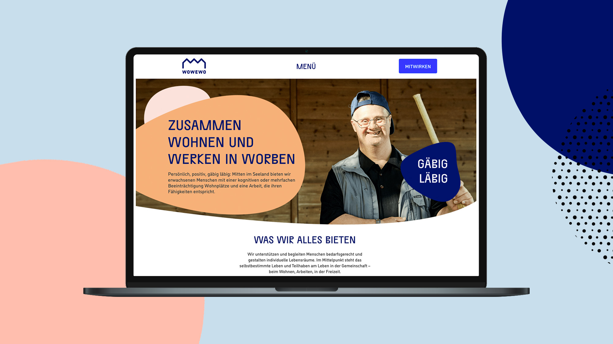 Die Stiftung Wohnen Werken Worben bereichert das Leben von Menschen mit Beeinträchtigung durch attraktiven Raum zum Wohnen, Werken und Wohlfühlen. Wir haben die Markenidentität und Website dazu entwickelt, die so gäbig läbig sind wie die Bewohner:innen vor Ort.