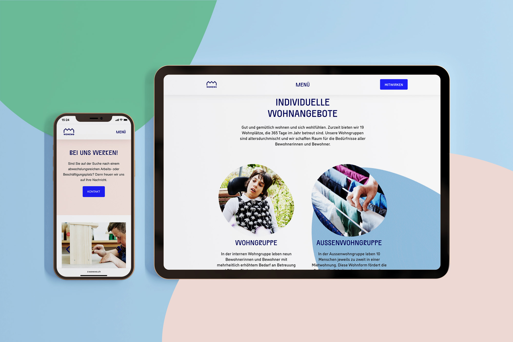 Die neue Website des WOWEWO überführt das Branding in die digitale Welt. UX und Design sind emotional, einfach, fokussiert und barrierefrei. Das macht die Website zugänglich für Klient:innen und Interessent:innen gleichermassen. Mit grosszügigen Bildern vom Leben vor Ort und wenigen, gut lesbaren Textelementen führt sie benutzerorientiert durch die Welt des WOWEWO.