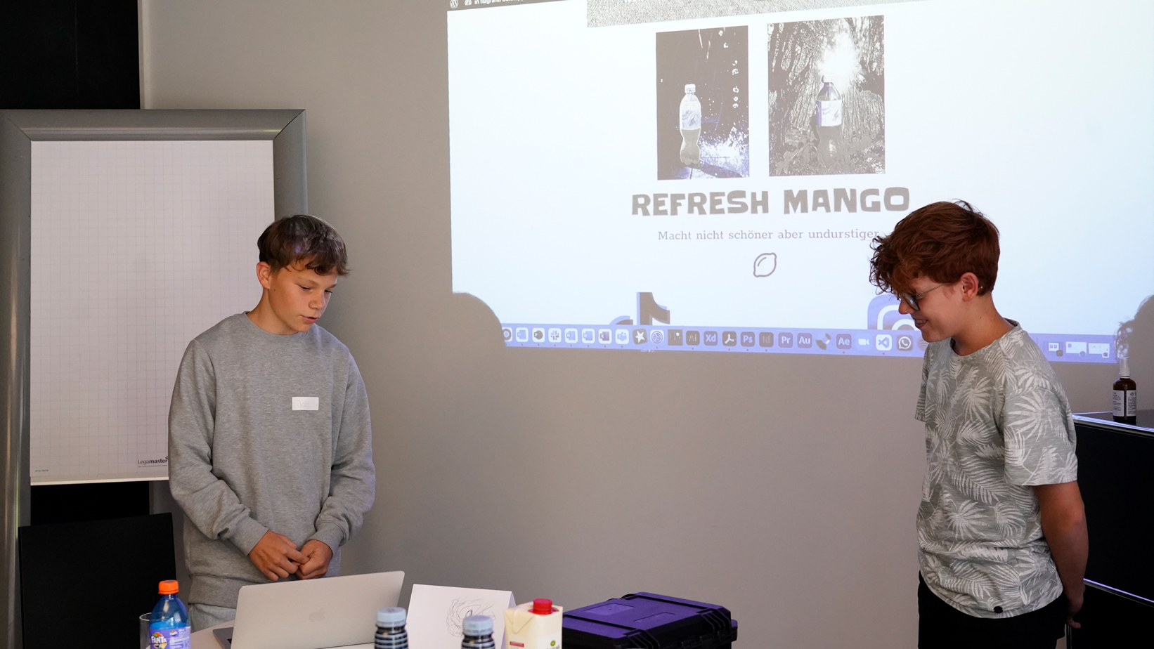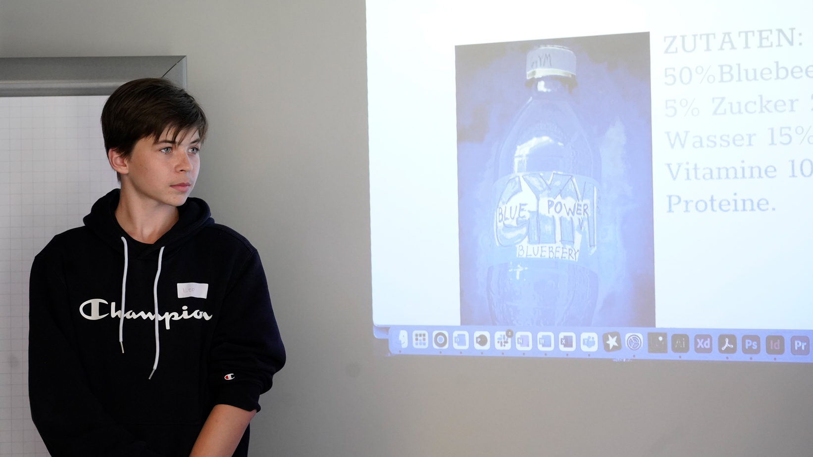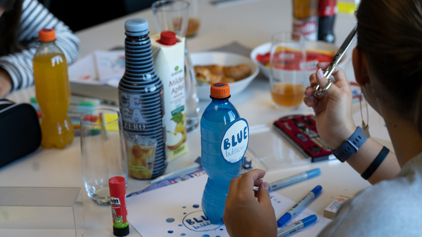 Die Teilnehmer hatten den Auftrag, ein neues Getränk auf den Markt zu bringen. Zuerst sollten sie eine neue kreative Etikette gestalten und die Etikette mit einem ausgebildeten Mediamatiker und einer ausgebildeten Interactive Media Designerin besprechen. Dazu überlegten sie sich einen ansprechenden Namen für das Getränk, einen Slogan, wie man es vermarkten möchte und bestimmten die Zielgruppe. Nach dem Feedback zum Entwurf, fertigten sie das Original mit Papier, Stift, Schere und Kleber an. Die verschiedenen Etiketten waren sehr ansprechend und kreativ gestaltet.
