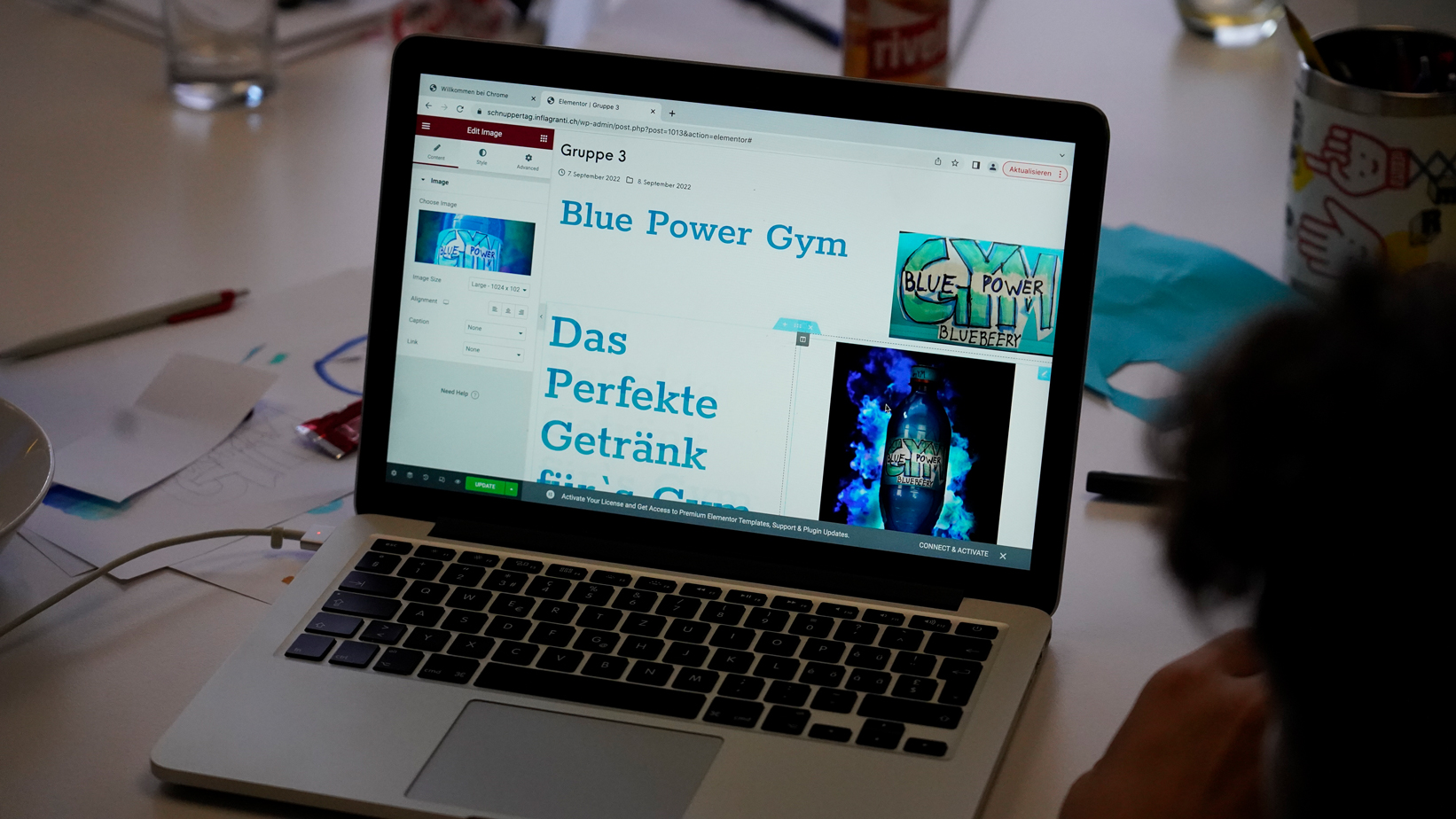 Damit sie den Berufsalltag eines Mediamatikers vollumfänglich kennenlernen, erstellten sie am Nachmittag eine Website zu ihrem eigenen Getränk. Vorher konnten sie einige Fotos mit ihrem Getränk machen, welche sie dann für ihre Website verwenden konnten. Mit WordPress bauten sie ihre eigene Arbeit auf. Zum Schluss präsentierten die Jugendlichen ihr Getränk mithilfe der Website vor einem kleinen Publikum aus internen Mitarbeitenden.